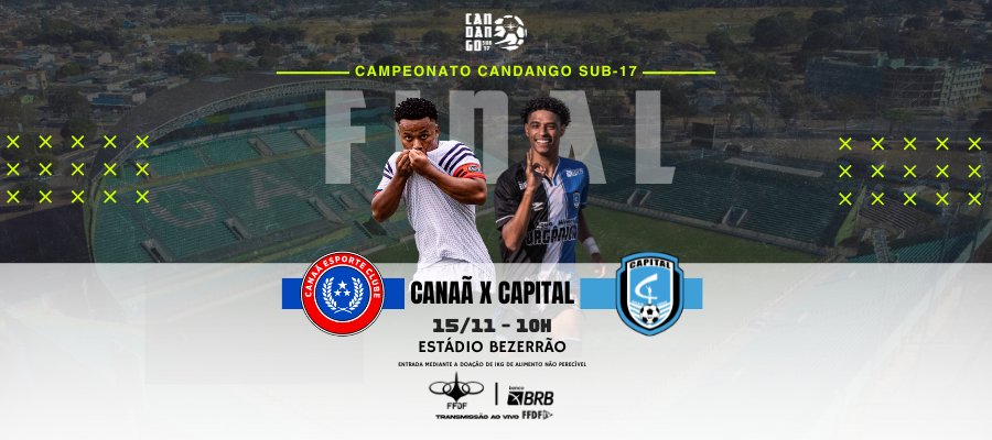 Capital e Canaã disputarão o título na próxima sexta-feira (15), às 10h, no estádio Bezerrão. Os torcedores que desejarem acompanhar a partida presencialmente poderão entrar mediante a doação de 1kg de alimento não perecível. Para quem não puder comparecer, a FFDFTv fará a transmissão, ao vivo pelo canal do YouTube.
